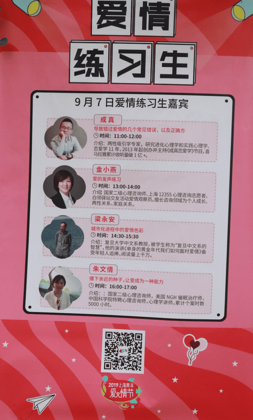 成真于2019年9月6日受上海市青少年服务和权益保护办公室的邀请参加上海爱清节进行演讲。帮助青年解答婚恋中遇到的烦恼,传递正向的青年婚恋价值观。